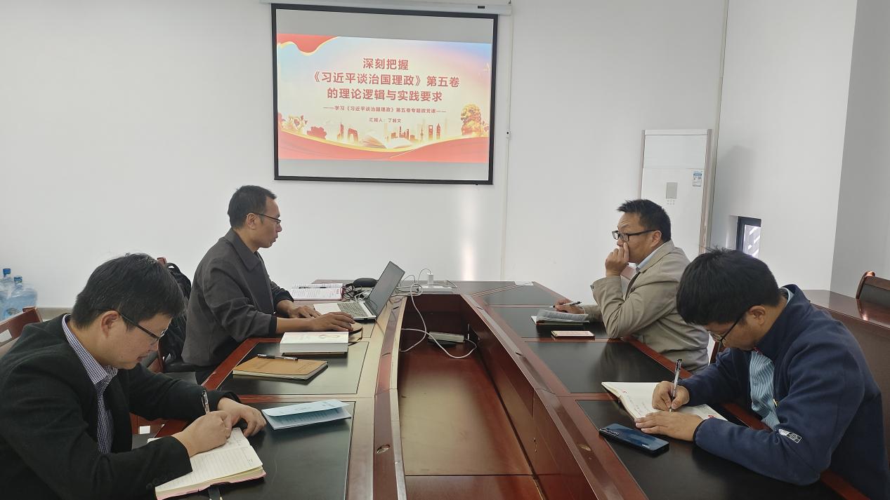 10月24日,我院在三江校区昌绪楼316活动室召党委理论学习中心组2025年第9次集体学习会,就深入学习贯彻《习近平谈治国理政》第五卷、切实用党的创新理论统领各项事业发展主题开展专题学习。学院院长刘柏雄、党委委员参加本次学习会议。会议由党委副书记丁能文主持。