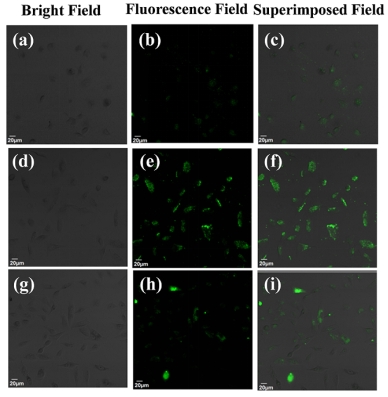 图4JXUST-29、JXUST-29@Arg和JXUST-29@Lys的明场透射图像(a、d和g)、荧光图像(b、e和h)和叠加场图像(c, f和i)。