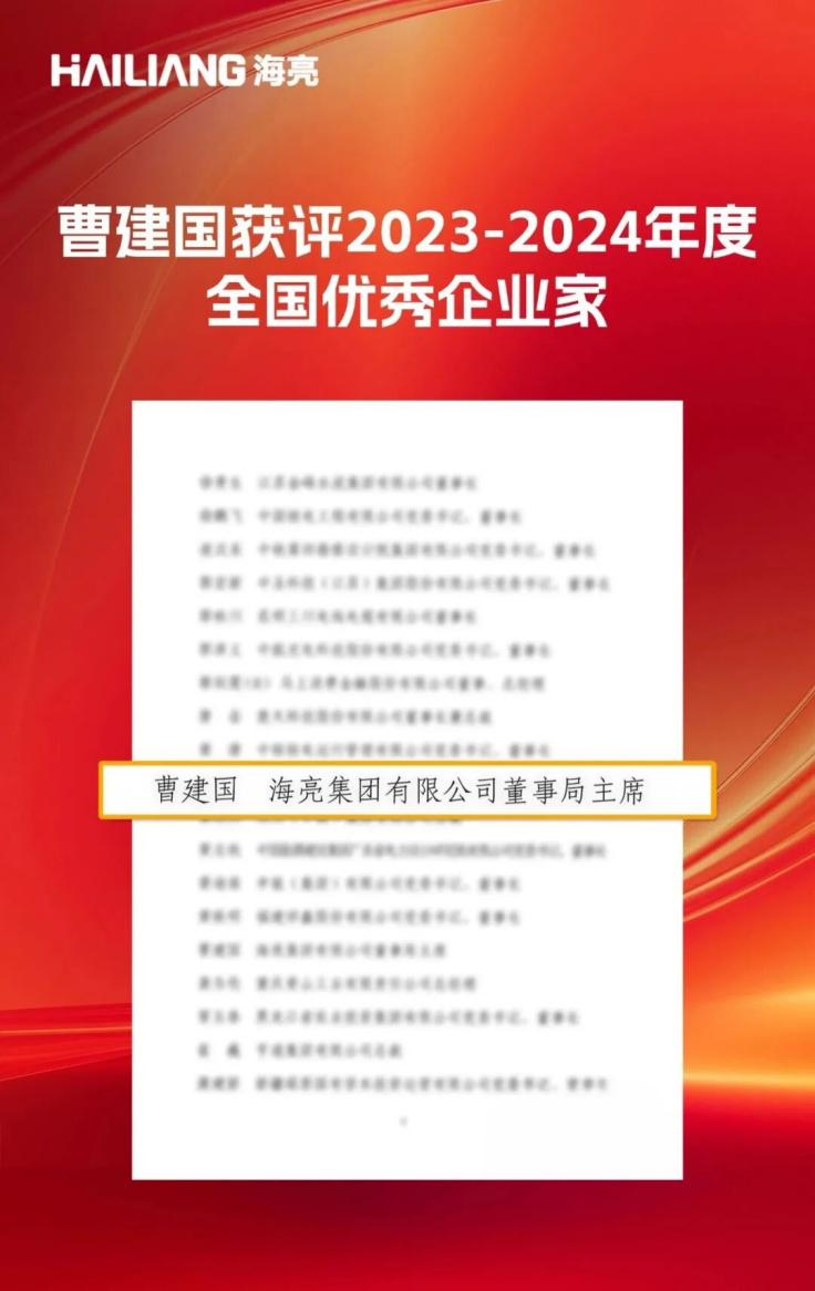 近日,2023-2024年度“全国优秀企业家”名单正式公布,该评选经国务院批准,由中国企业联合会、中国企业家协会主办,全国共164位企业家获此殊荣。江西理工大学材料科学与工程学院1982届有色金属压力加工专业校友、海亮集团董事局原主席曹建国凭借在有色金属行业卓越经营管理能力和突出社会贡献成功入选,成为行业内的标杆典范。